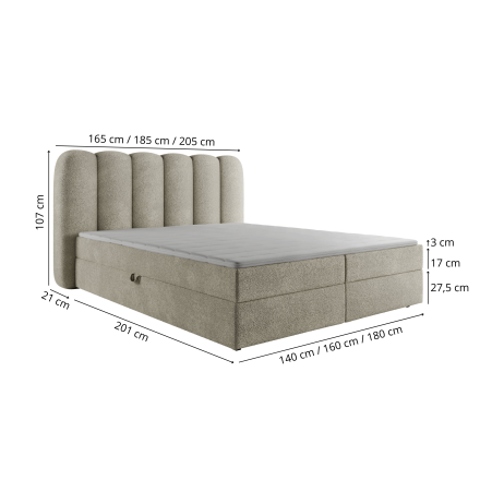 • Powierzchnia spania: 140 cm x 200 cm / 160 cm x 200 cm / 180 cm x 200 cm