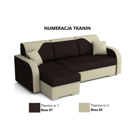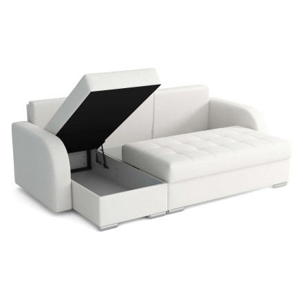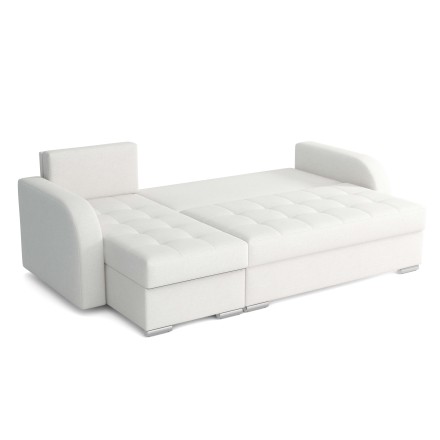 Model ten został wyposażony w dwa przestronne pojemniki na pościel. Ukryte pod siedziskami, umożliwiają wygodne przechowywanie kołder, poduszek czy innych domowych tekstyliów, pomagając utrzymać porządek w salonie.